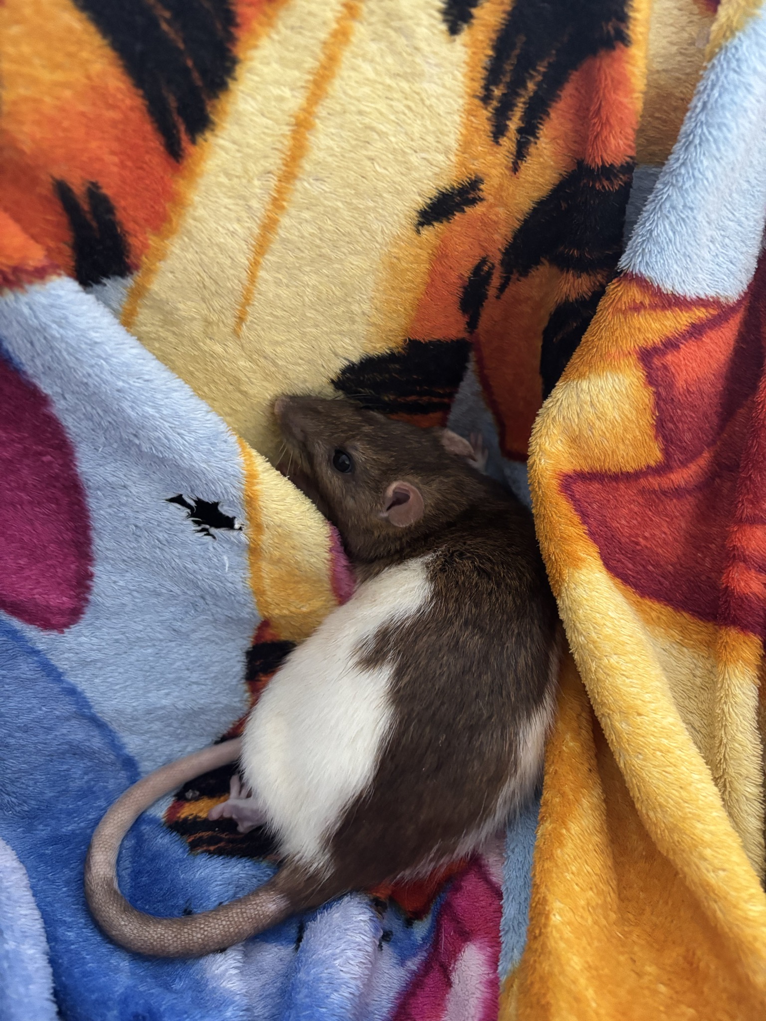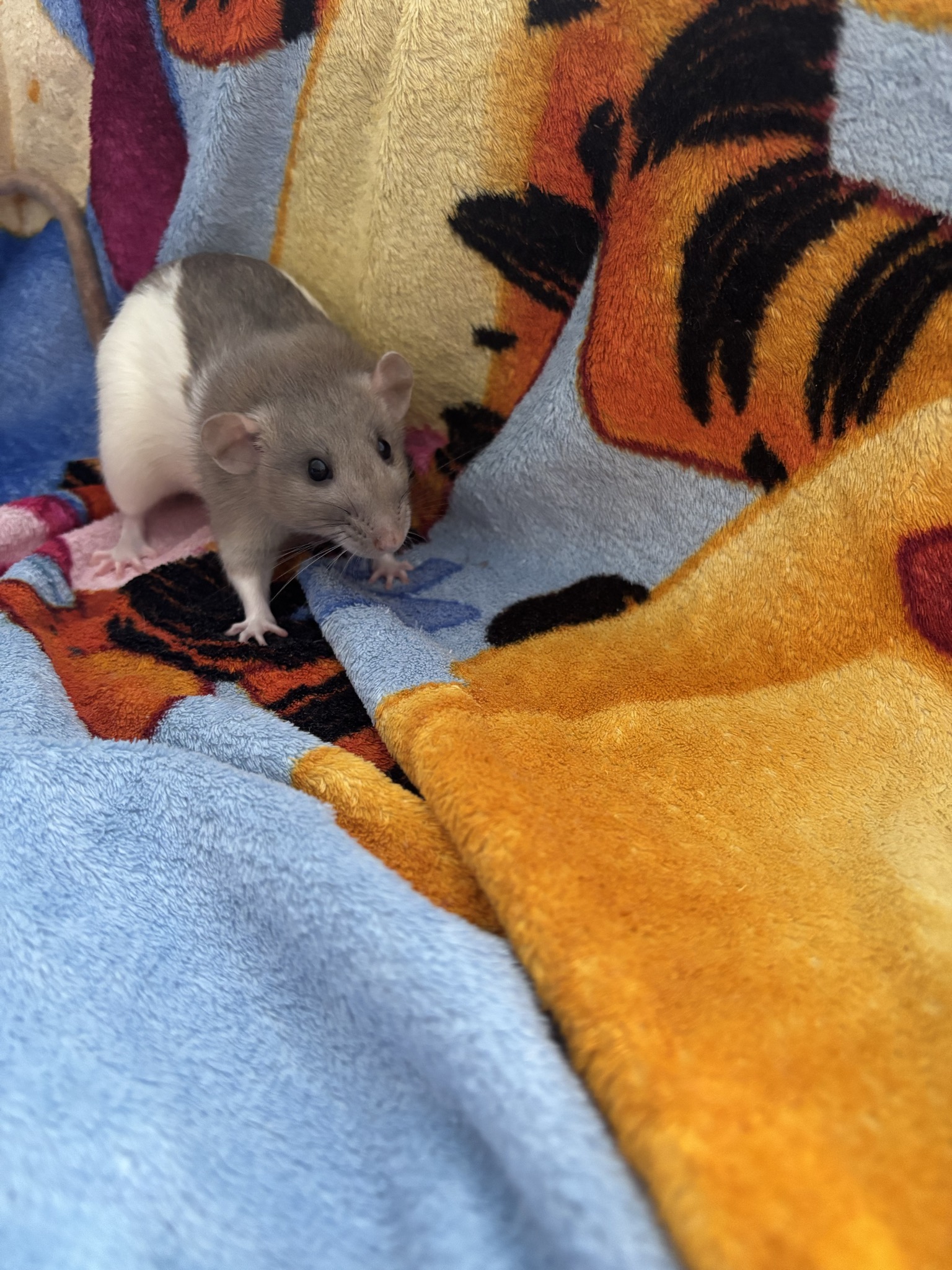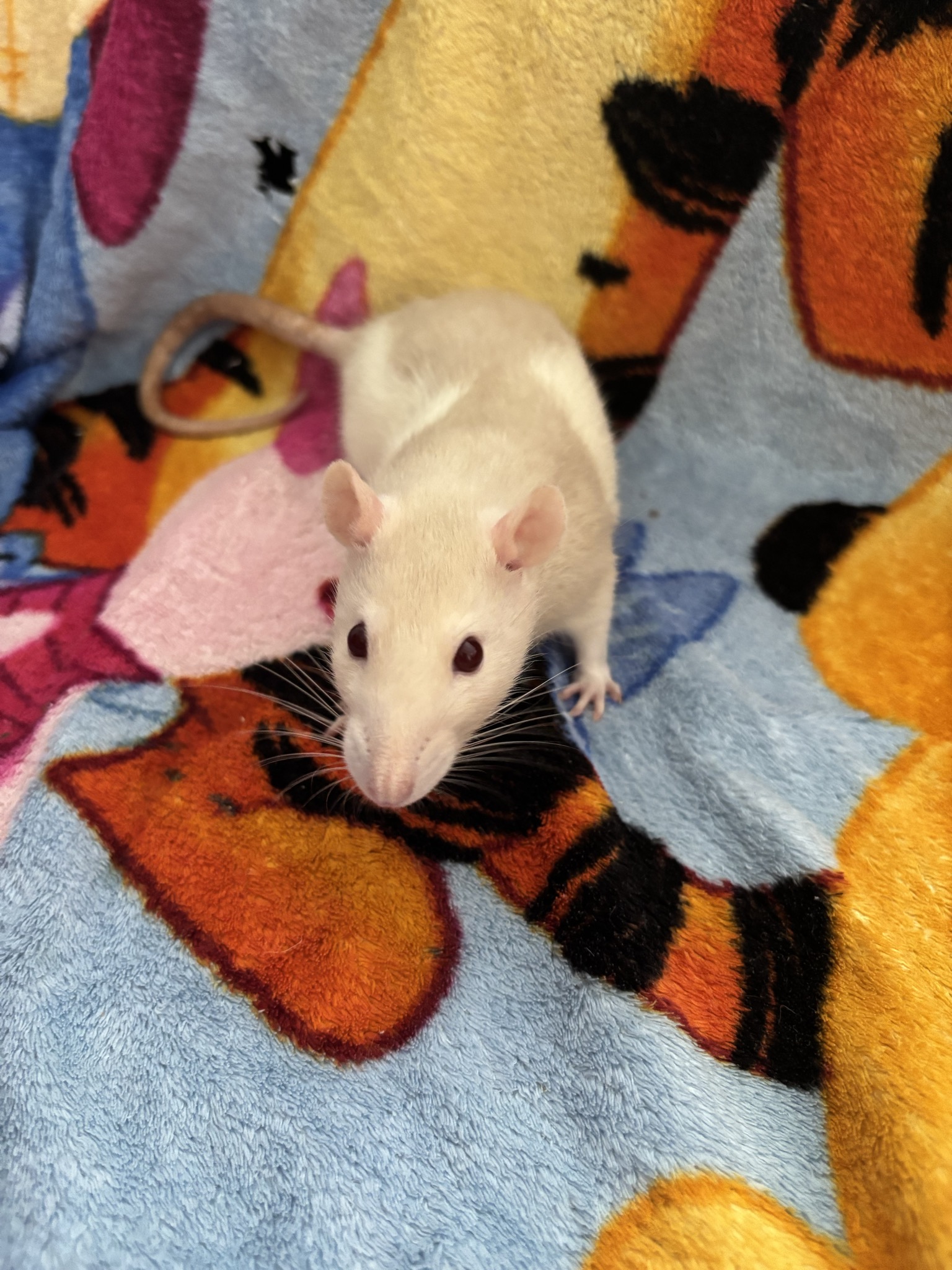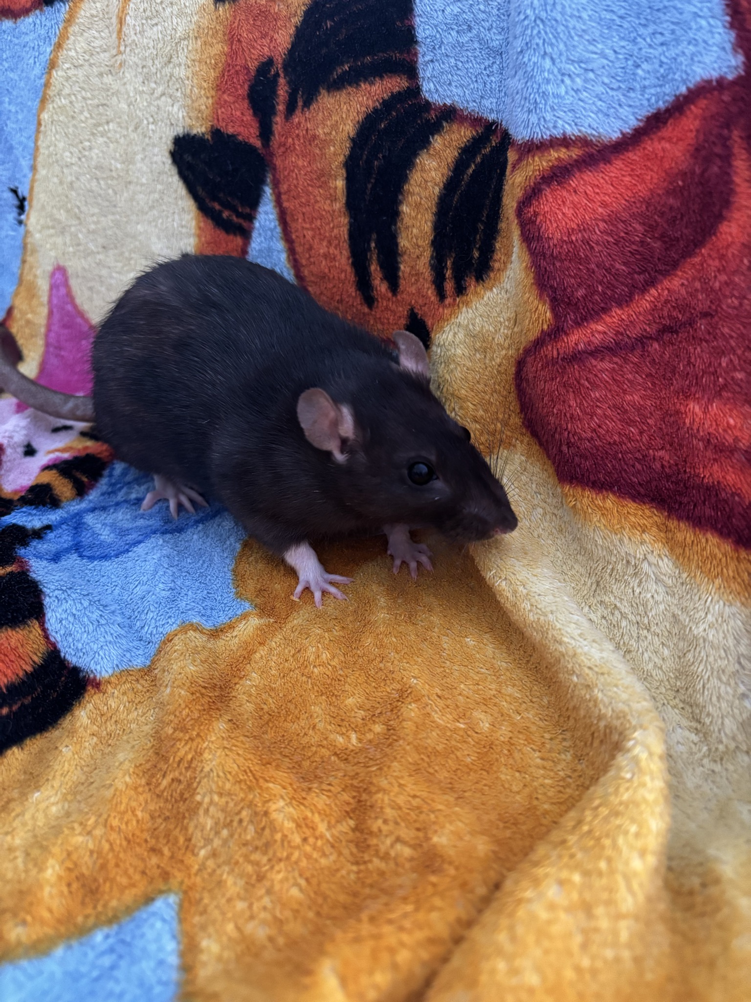 12 Mädels, Alter unbekannt, zwischen 1-2 Jahre, ein Großteil noch am Schnupfen. Bis zum Ende der Parasitenbehandlung sehe ich aber auszugsbereit: Husky, black berkshire, die beiden Creme/Beige hooded, agouti hooded, evtl auch die graue dumbo hooded und die schwarze dumbo hooded